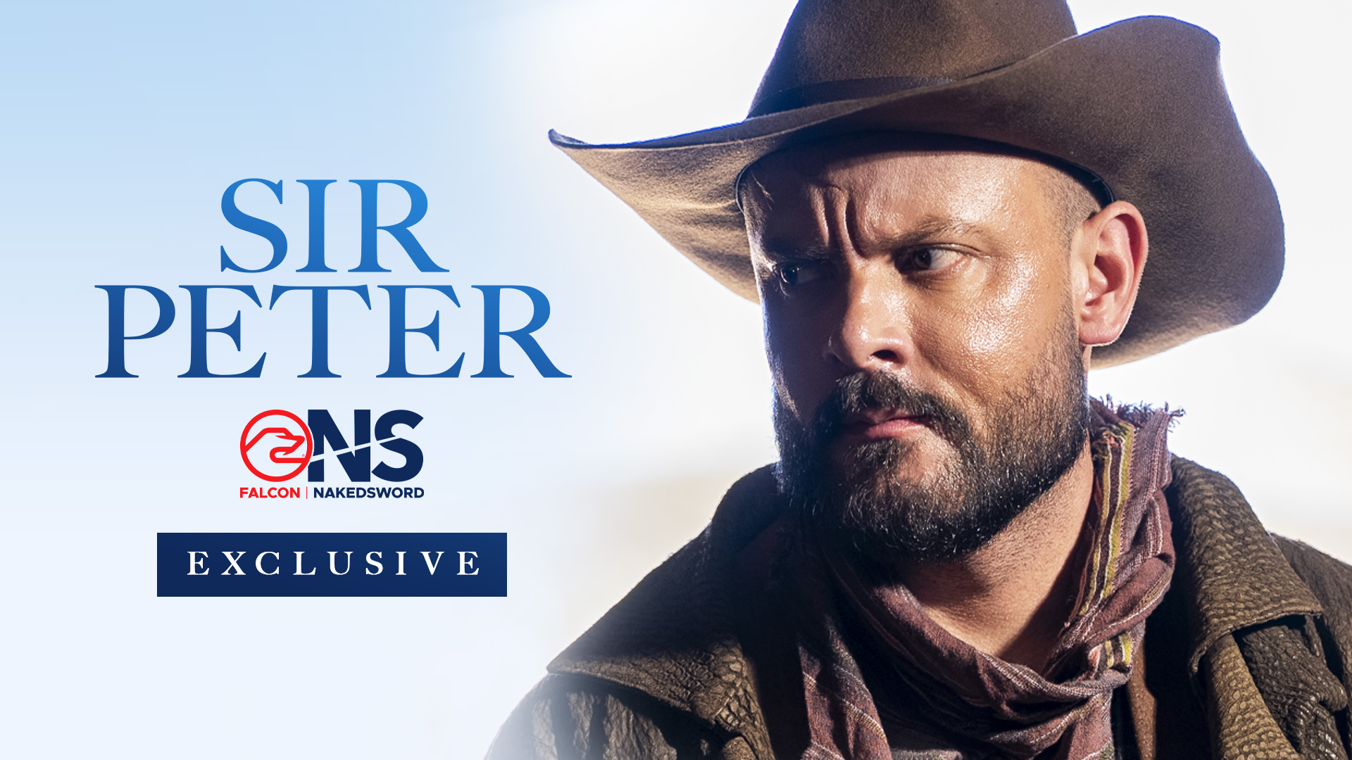 Next, we’ve got some must-see Breaking News about Falcon | NakedSword Exclusive Sir Peter, and his just-released scene from NakedSword’s Western epic, Ashes Before Dawn.